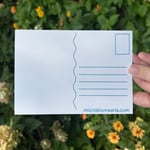 5x7” print on sturdy matte paper. Uncoated back for writing if you want to send it in the mail, but also works great as a mini print for your wall!