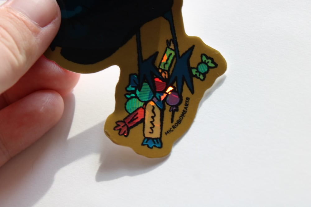 The holo candy on this sticker shines like crinkly candy wrappers.