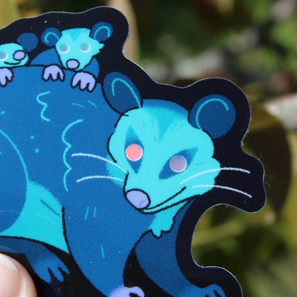 The holo eyes on these opposums shine like an animal’s eyes at night.