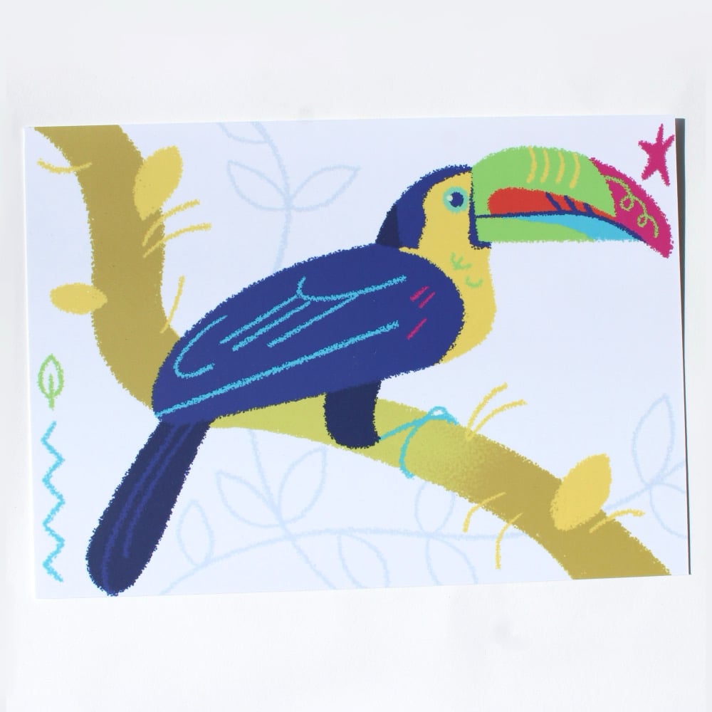 5x7” print on sturdy matte paper. Uncoated back for writing if you want to send it in the mail, but also works great as a mini print for your wall!